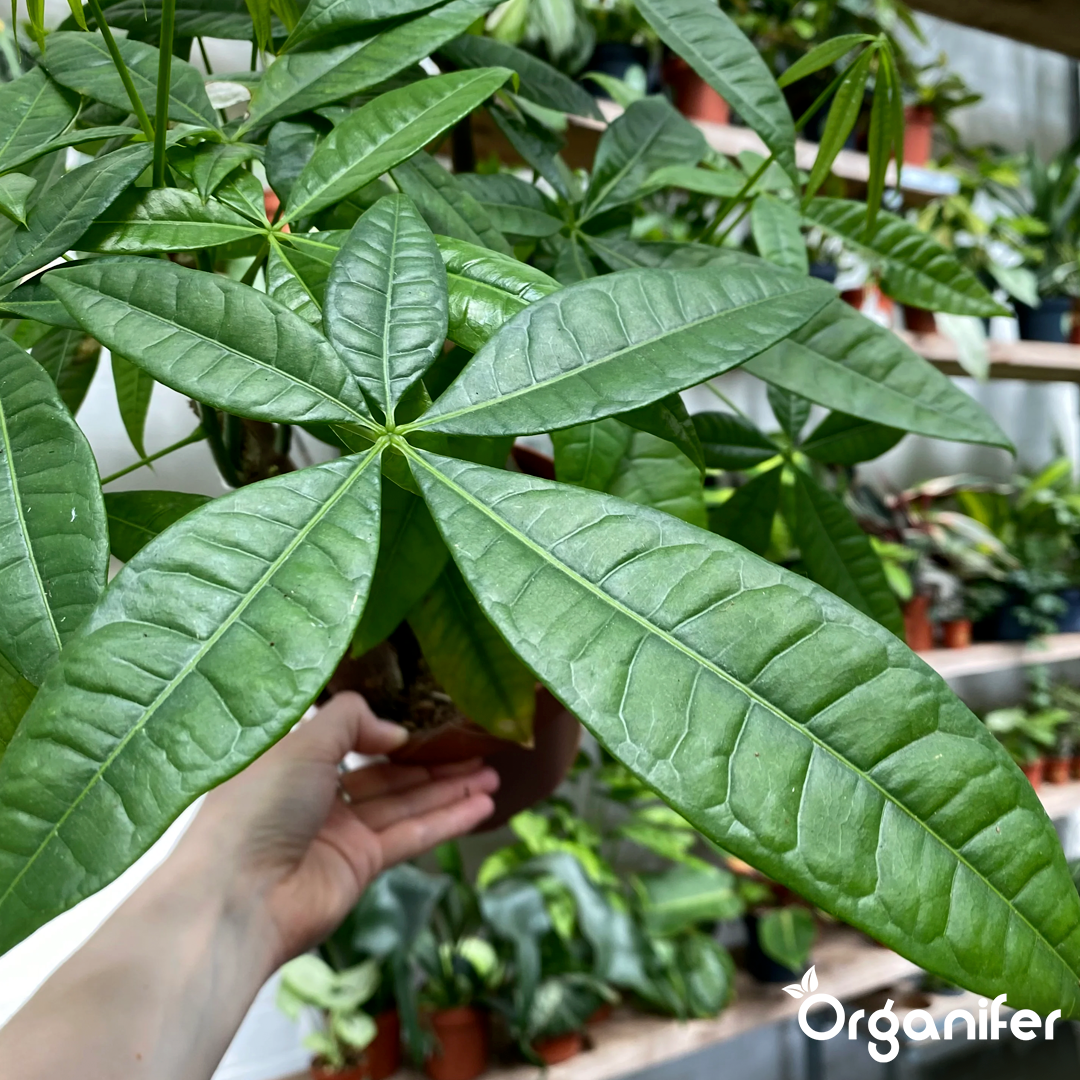 Organifer Money Tree Liquid Fertiliser supports the healthy development of Pachira aquatica and Pachira glabra, commonly known as Money Tree, Money Chestnut, Malabar Chestnut, or Guiana Chestnut. These tropical wetland species form elegant woody stems often braided for ornamental value with large, hand-shaped leaves at the crown. The balanced 2-1-8 organic formulation strengthens trunk development, improves branching structure, and promotes uniform leaf growth, helping Money Trees maintain their signature upright form and lush canopy in indoor environments.
