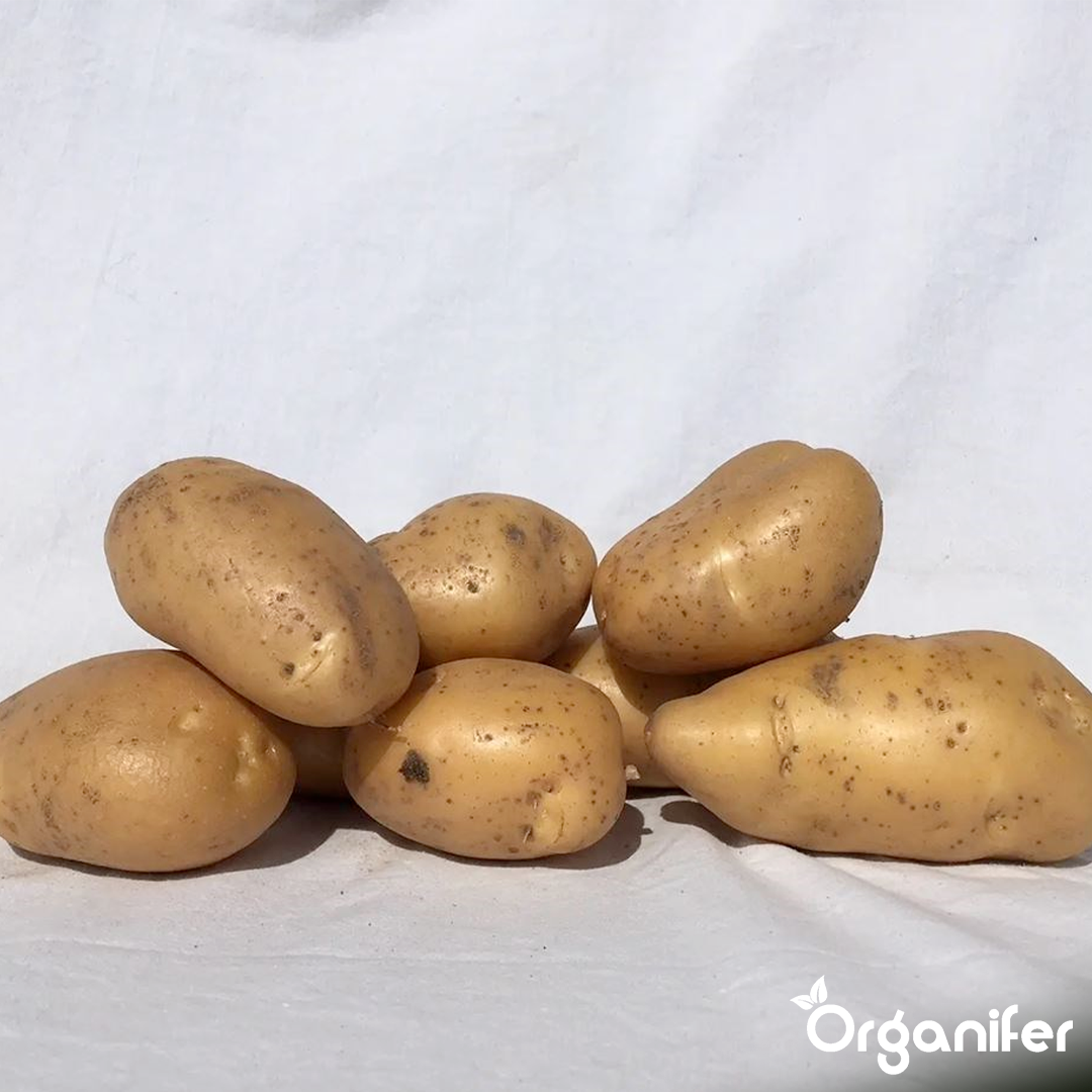 Organifer Gloria seed potatoes produce good yields when harvested on time. However, this variety is quite susceptible to Phytophthora. For this reason, early harvesting is recommended to reduce disease pressure and maintain tuber quality. With proper timing and attentive cultivation, these gold potato seeds reward growers with attractive potato sets and a satisfying harvest. Gloria potato is especially suitable for growers who monitor crops closely and prefer early lifting of their potatoes.